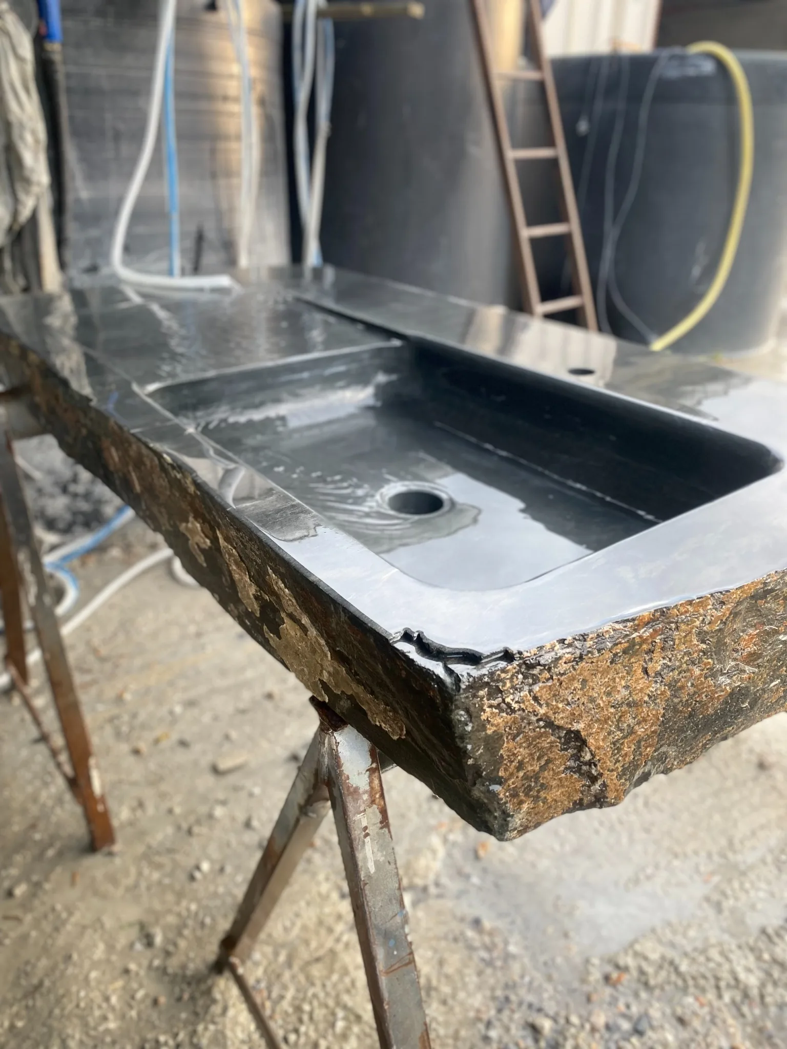 Une vasque ou un évier demande une pierre parfaitement adaptée. Avant fabrication, nous sélectionnons les blocs selon :
